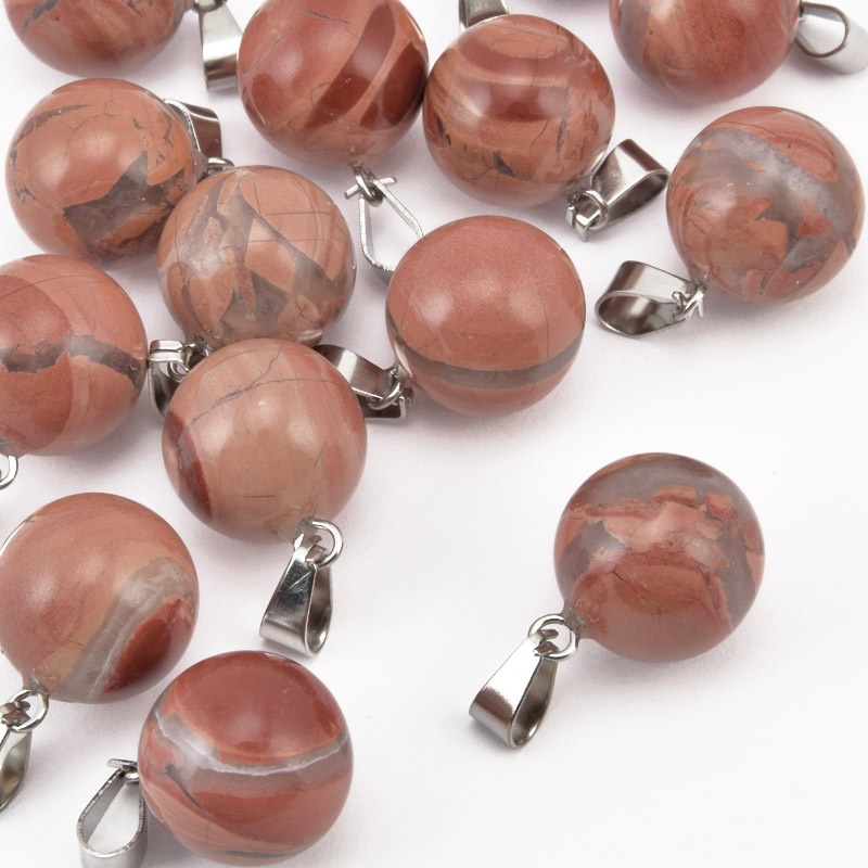 Подвеска Шар, Натур. камень Яшма красная, 14 мм (POD-020858) / 1 шт