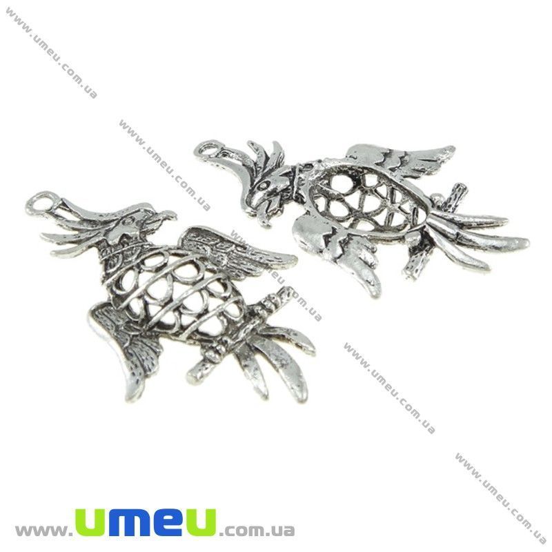 Подвеска метал. Попугай, 47х28 мм, Античное серебро (POD-021086) / 1 шт