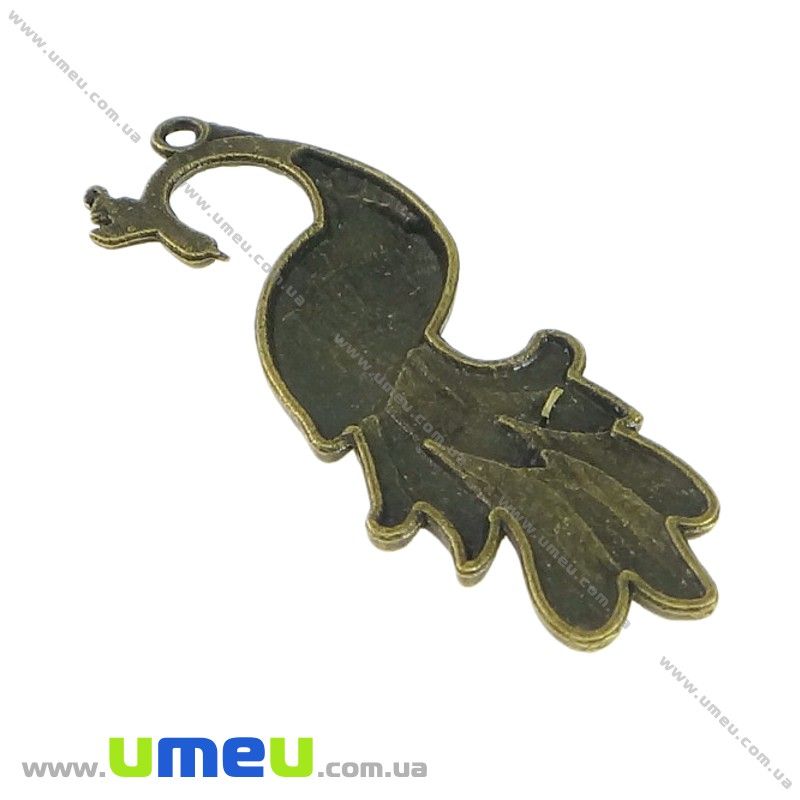 Подвеска метал. Павлин, 60х22 мм, Античная бронза (POD-021103) / 1 шт