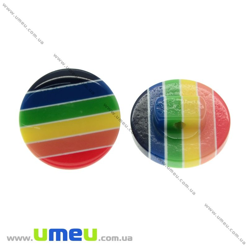 Пуговица пластиковая на ножке Полосатая, 14 мм, Разноцветная (PUG-021440) / 1 шт