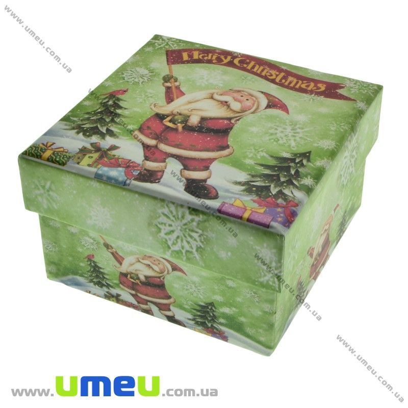 Подарочная коробочка Квадратная новогодняя, 9х9х5,5 см, Салатовая (UPK-023085) /