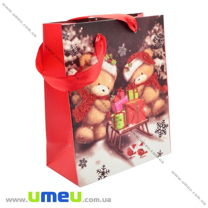Подарочный пакет Новогодний, 17х14х7 см, Красный (UPK-023369) /