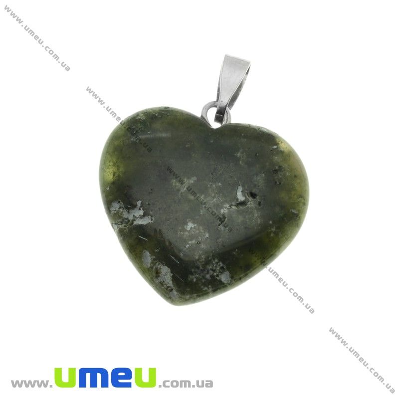 Подвеска Сердце из натурального камня, Агат моховый, 28х20 мм (POD-023906) / 1 шт