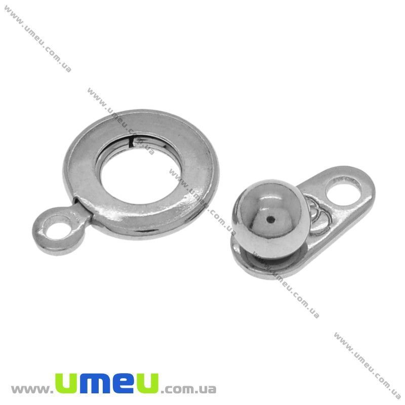 Замок-кнопка из нержавеющей стали, 15х9 мм, Темное серебро (STL-028374) / 1 шт