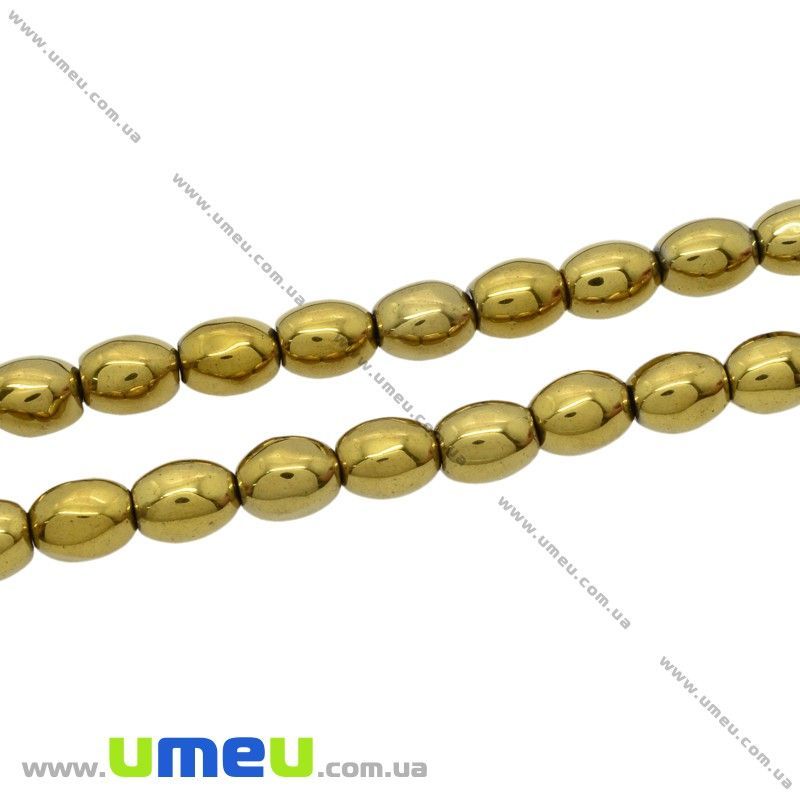 [Архив] Бусина натуральный камень Гематит окрашенный, 7х5 мм, Золотистая, Рис (BUS-028655) / 1 шт