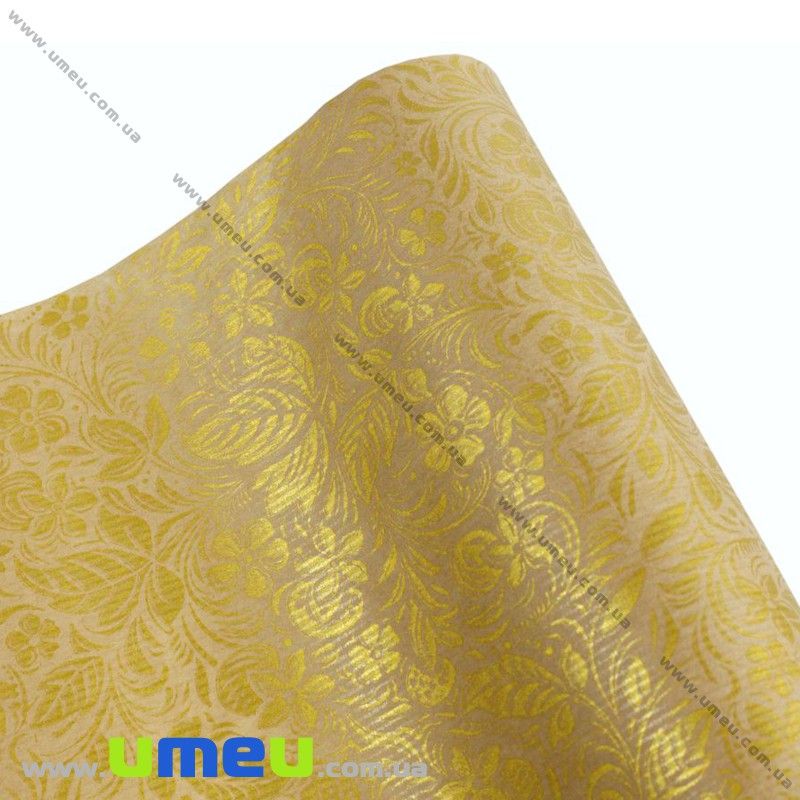 Упаковочная крафт бумага Цветы золотистые, Бежевая, 70х100 см (UPK-030233) / 1 лист