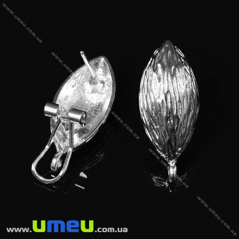 Пусеты с защелкой, Листики, Светлое серебро, 25х11 мм (OSN-031771) / 1 уп (2 шт)