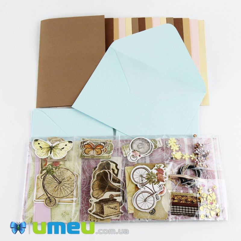 Набор скрапбукинга для изготовления 15-ти больших открыток с конвертами (DIF-032717) / 1 набор