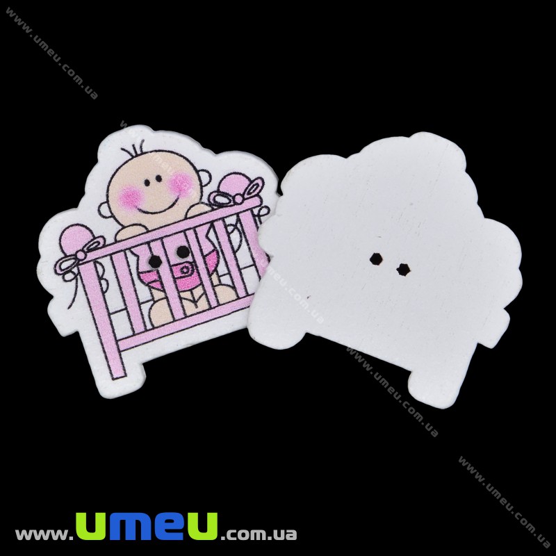 Декоративный пришивной элемент Малыш в кроватке, 32х30 мм, Голубой (DIF-033411) /