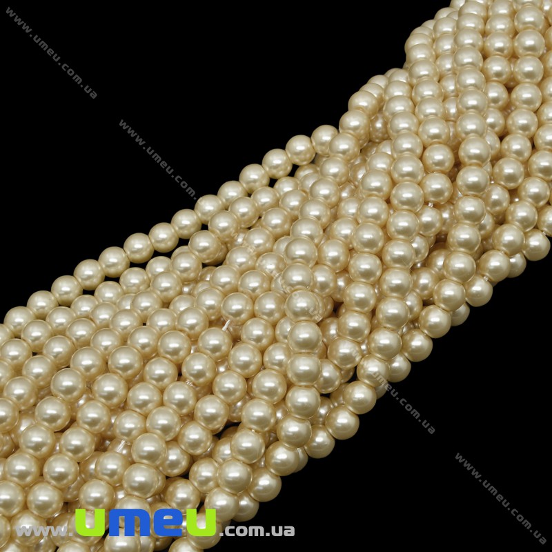 Бусины стеклянные Жемчуг Premium, 6 мм, Золотисто-желтые, Круглые (BUS-034109) / 1 низка