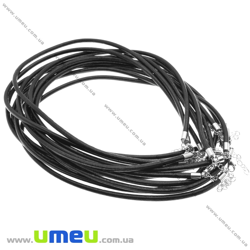 Основа для колье кожаная с замком из нерж. стали, Черная, 46 см, 4 мм (OSN-034667) / 1 шт