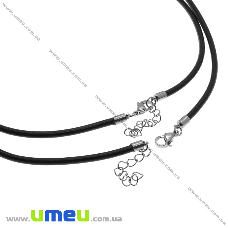 Основа для колье кожаная с замком из нерж. стали, Черная, 47 см, 3 мм (OSN-034669) / 1 шт