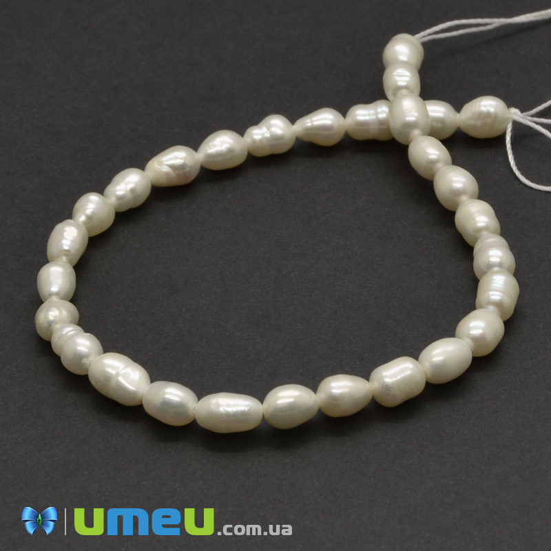Бусина натуральный камень Жемчуг речной молочный Рис, 5-6х4-5 мм (BUS-039397) / 1 низка