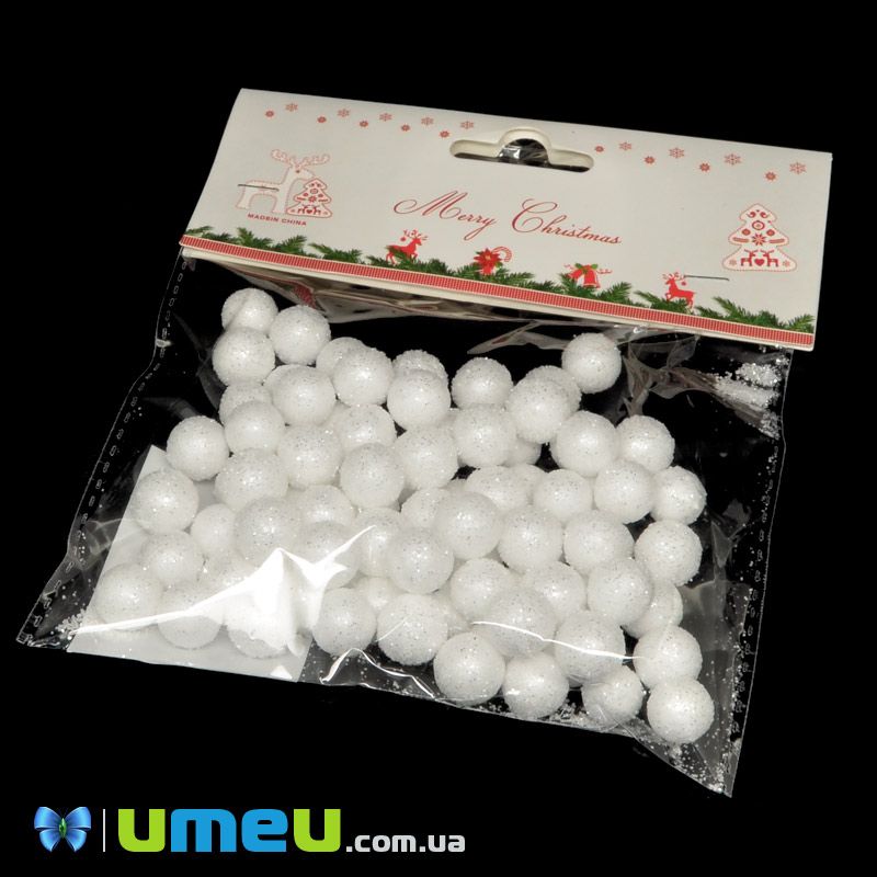 Декоративные пенопластовые шарики в глиттере, 1 см (DEC-039542) / 1 уп