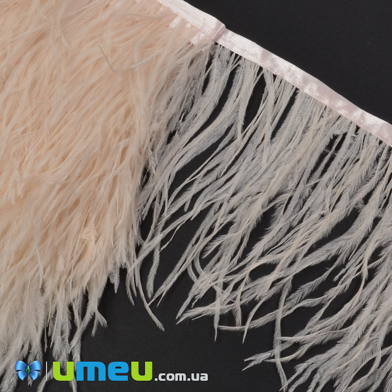 Перья страуса на ленте, 10-15 см, Персиковые светлые (PER-040310) / 1 м