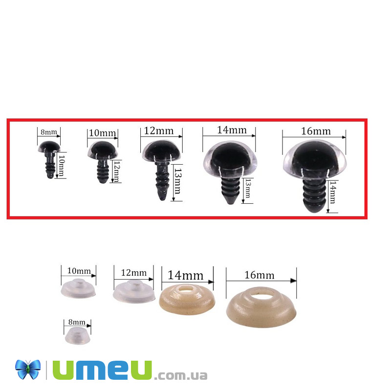 Глазки со штифтом круглые (с заглушками), 16 мм, Черно-белые (DIF-040470) / 1 комплект