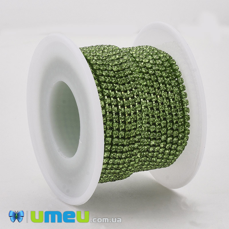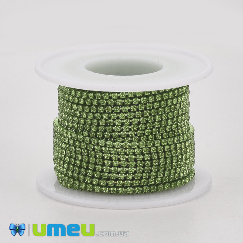 Стразовая цепь SS6 - 2,0 мм, Салатовая, Стразы стеклянные салатовые (ZEP-040481) / 1 м