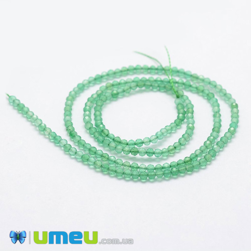Бусины Агат зеленый, 2 мм, Круглые граненые (BUS-040873) / 1 низка