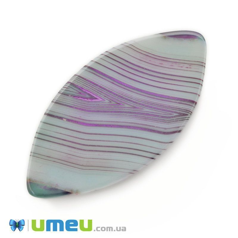 Кабошон нат. камень Агат Бразильский фиолетово-зеленый, Лодочка, 38,5х19,5 мм (KAB-042762) / 1 шт