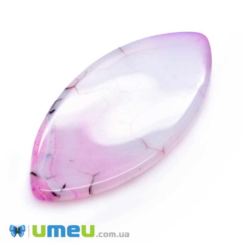 Кабошон нат. камень Агат Бразильский розово-малиновый, Лодочка, 39,6х19,6 мм (KAB-042788) / 1 шт