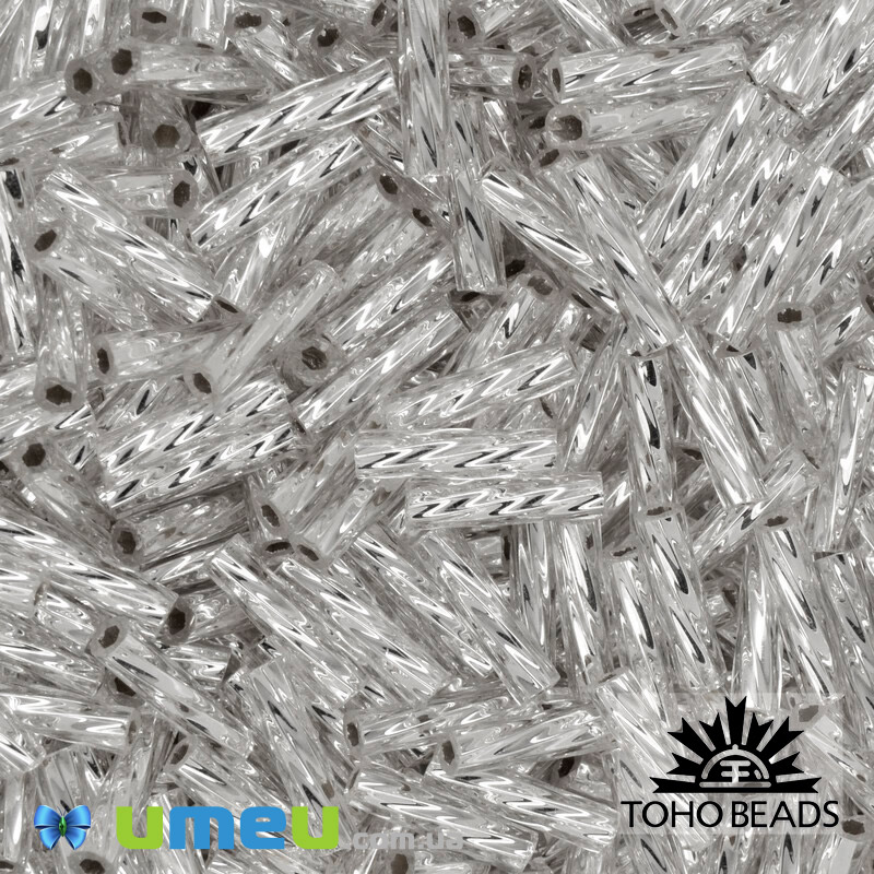 Бисер японский TOHO Стеклярус крученый 9 мм TW-03-21, Серебристый (BIS-043354) / 1 уп (5 г)