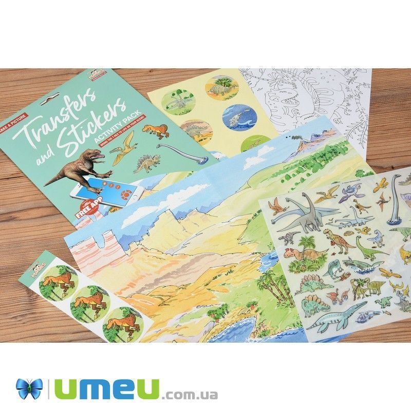 Большой набор переводных наклеек с тематическим изображением более 20-ти видов динозавров.