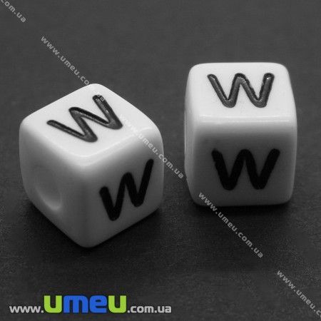 [Архив] Бусина пластиковая Куб буква W, 10х10 мм, Белая (BUS-004375) / 1 шт