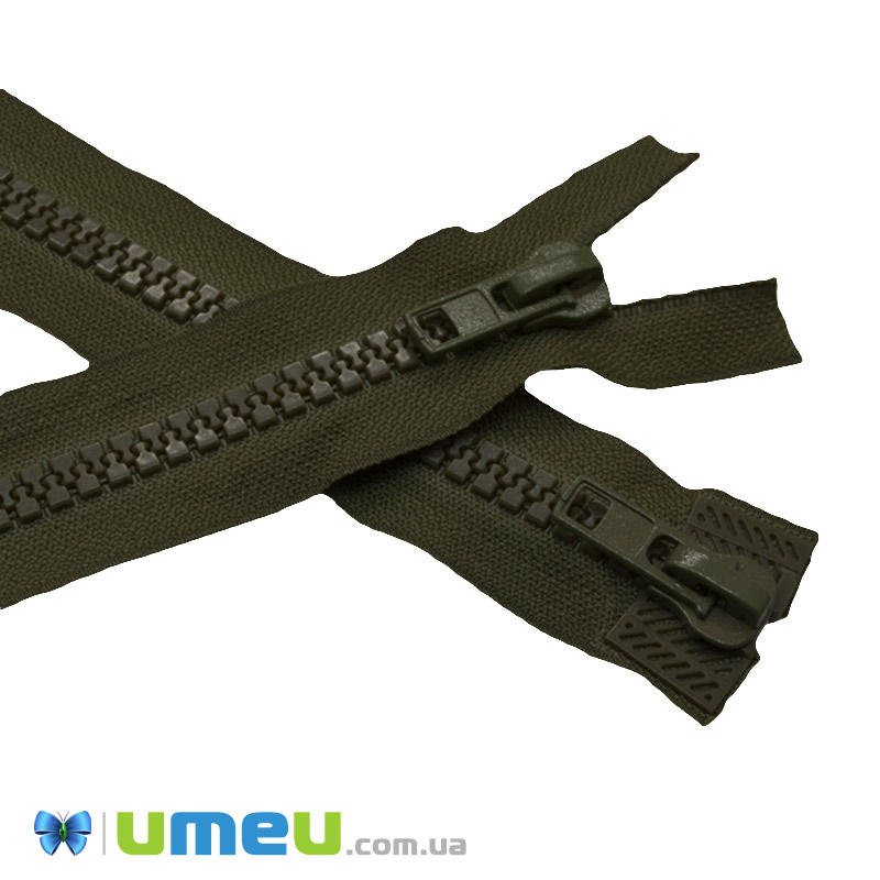 Молния тракторная разъемная (2 бегунка) 80 см, Тип 10, Хаки темная (ZIP-045343) / 1 шт