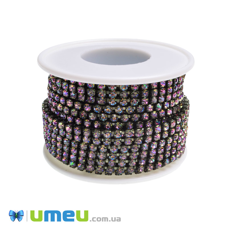 Стразовая цепь SS12 (2,8 мм), Ирис зеленая, Стразы стеклянные ирис (ZEP-049289) / 1 м