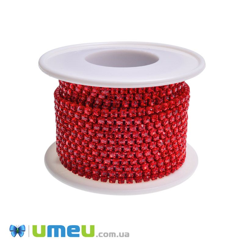 Стразовая цепь SS8,5 (2,6 мм), Красная, Стразы стеклянные красные (ZEP-049301) / 1 м