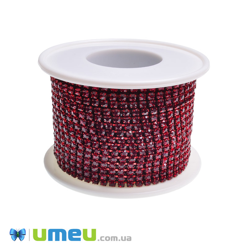 Стразовая цепь SS8,5 (2,6 мм), Красная темная, Стразы стеклянные красные (ZEP-049302) / 1 м