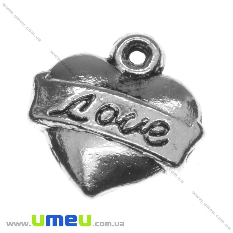 Подвеска метал. Сердце (двухстор.), 14х14 мм, Античное серебро (POD-004943) / 1 шт