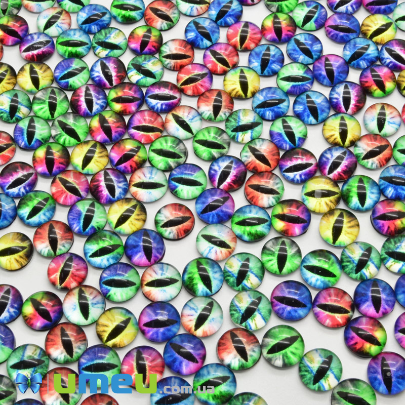 Кабошоны стеклянные с принтом Глаз, 8 мм, Круглые, Микс (KAB-050706) / 1 уп (10 шт)