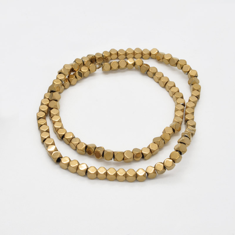 Бусины Гематит, Натур. камень, Кубик, 4х4х4 мм, С покрытием, Золотистые (BUS-051760) / 1 низка