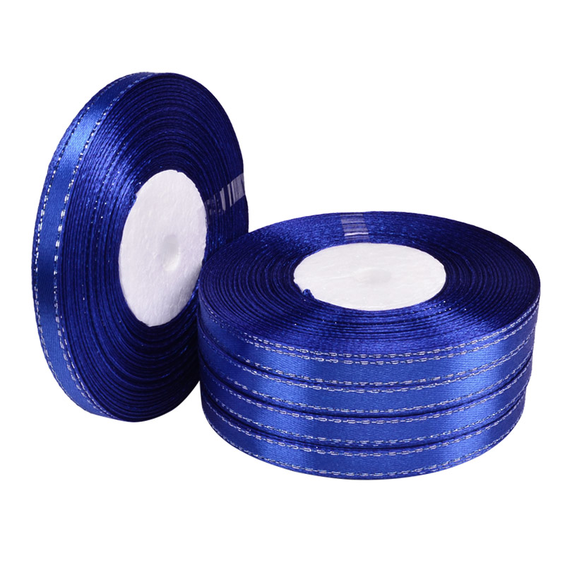Атласная лента с люрексом, 6 мм, Синяя (LEN-052865) /