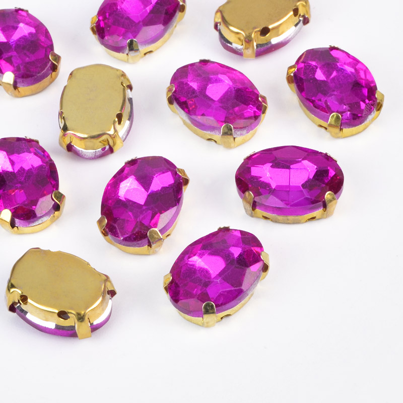 Шатон овальный 14х10 мм, Золото, Малиновый (KAB-052979) / 1 шт