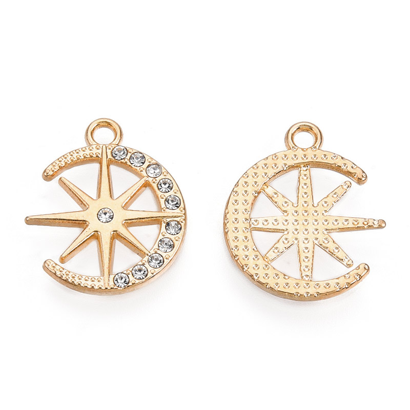 Подвеска метал. Луна со звездой со стразами, 19,5х16 мм, Светлое золото (POD-053550) / 1 шт