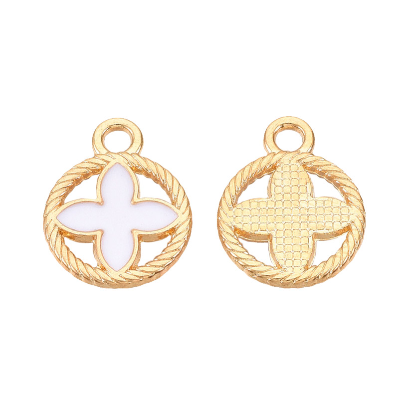 Подвеска метал. Круглая с цветком, Белая, 16х13 мм, Золото (POD-053702) / 1 шт