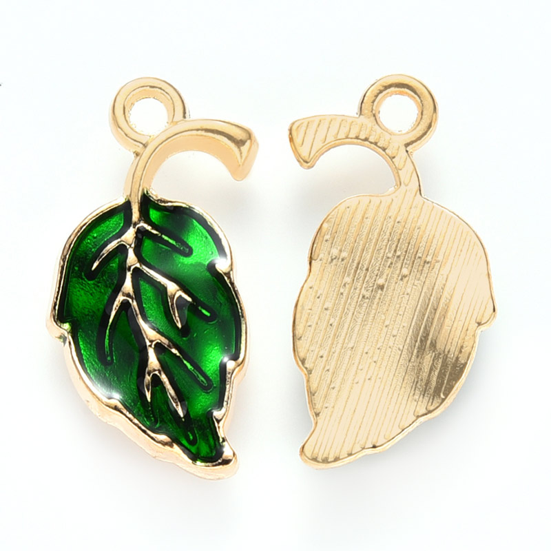 Подвеска метал. Листик зеленый, 20х10 мм, Золото (POD-053711) / 1 шт