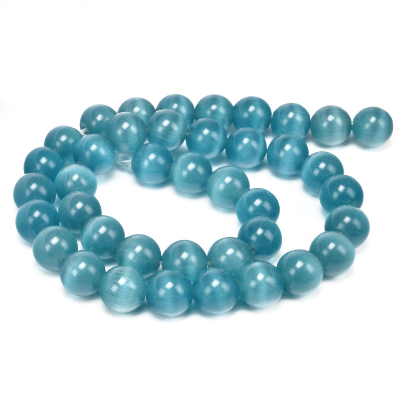 Бусины Кошачий глаз, Синт. камень, 10 мм, Бирюзовые, Круглые (BUS-054213) / 1 низка