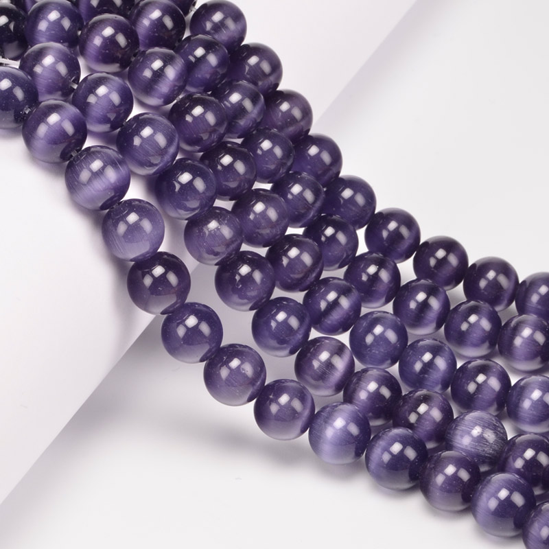 Бусины Кошачий глаз, Синт. камень, 10 мм, Аметистовые, Круглые (BUS-054232) / 1 низка