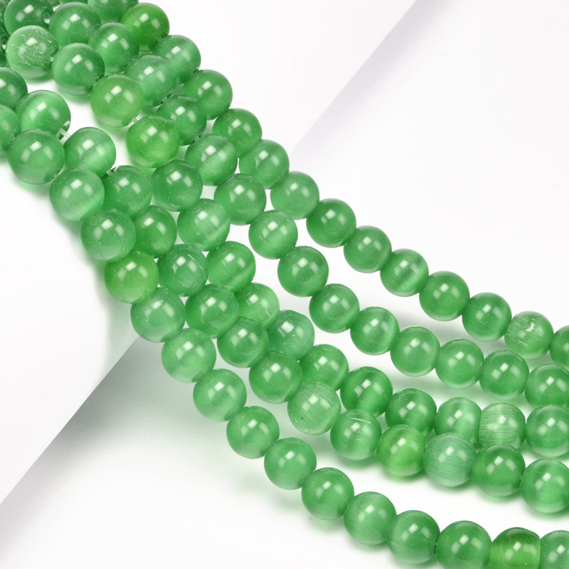 Бусины Кошачий глаз, Синт. камень, 8 мм, Зеленые, Круглые (BUS-054252) / 1 низка