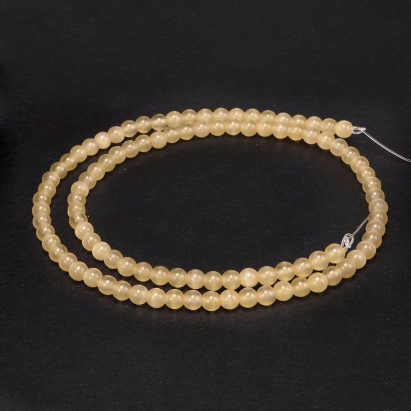 Бусины Кошачий глаз, Синт. камень, 4 мм, Желтые, Круглые (BUS-054277) / 1 низка