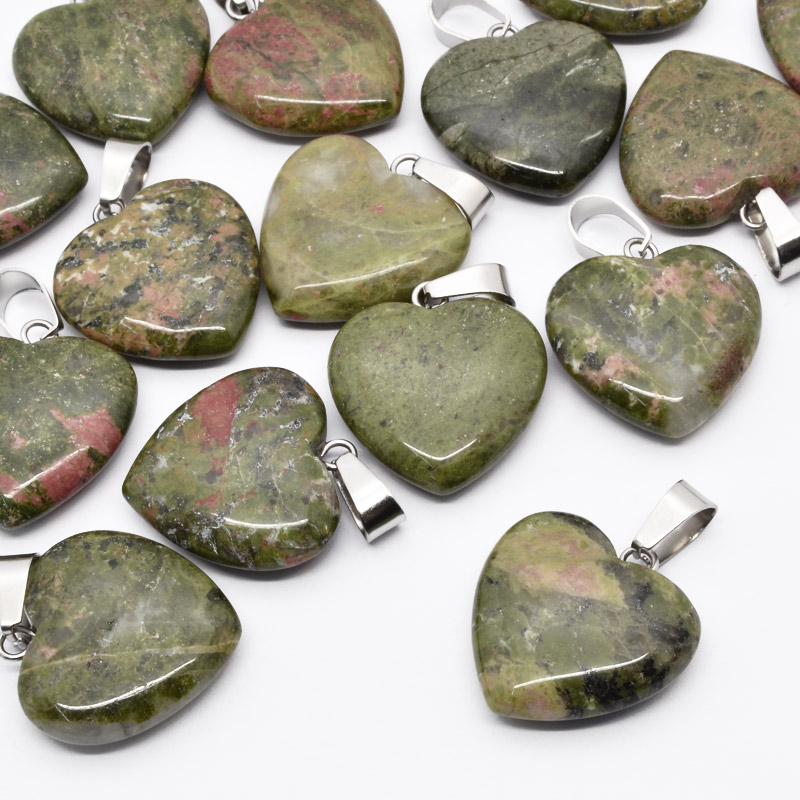 Подвеска Сердце, Натур. камень Унакит, 20х20 мм (POD-054333) / 1 шт