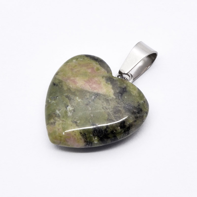 Подвеска Сердце, Натур. камень Унакит, 20х20 мм (POD-054333) / 1 шт