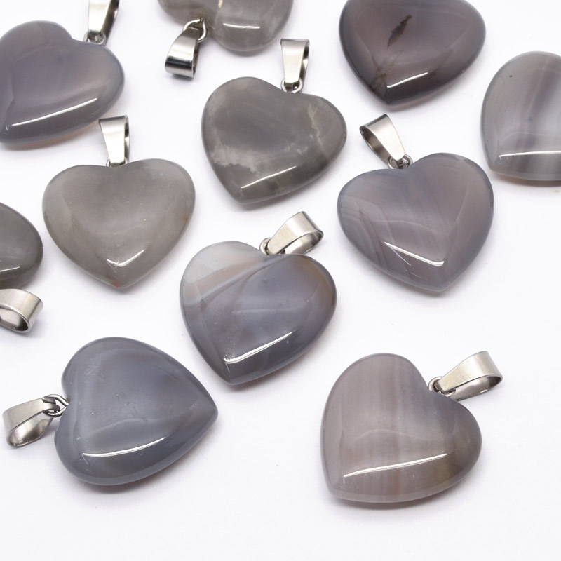 Подвеска Сердце, Натур. камень Агат серый, 20х20 мм (POD-054352) / 1 шт