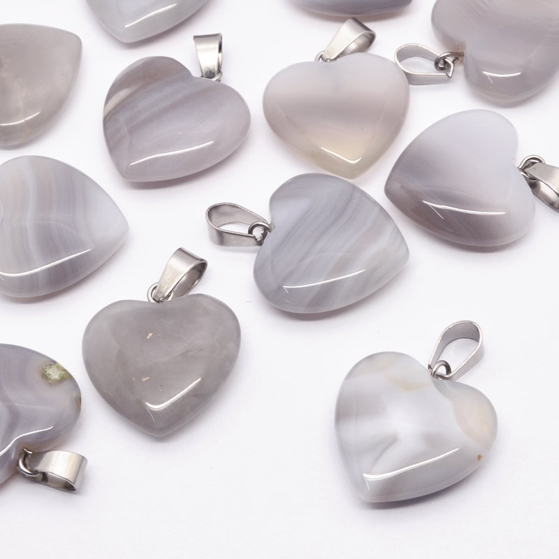 Подвеска Сердце, Натур. камень Агат серый, 20х20 мм (POD-054354) / 1 шт