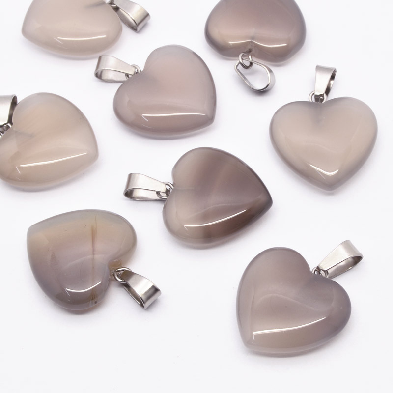 Подвеска Сердце, Натур. камень Агат серый, 20х20 мм (POD-054355) / 1 шт