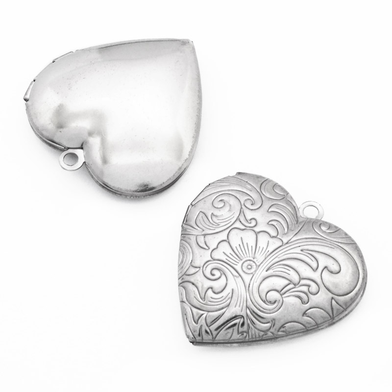 Медальон Сердце с узором из нержавеющей стали, 29х29х7 мм, Темное серебро (STL-054451) / 1 шт