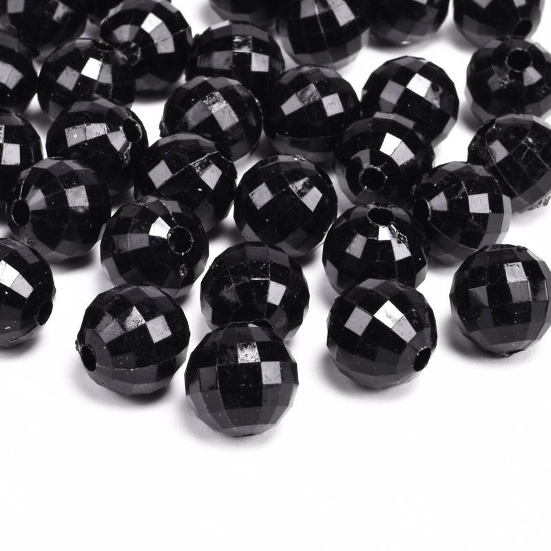 Бусины для сумок ОПТ, Акриловые, Круглые граненые, 9,5 мм, Черные (BUS-054543) / 1 уп (450 г)